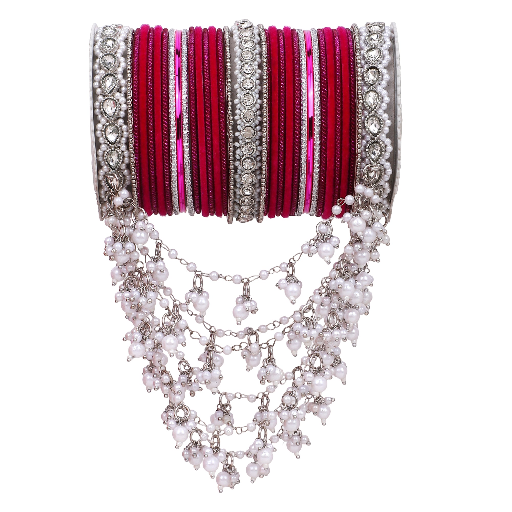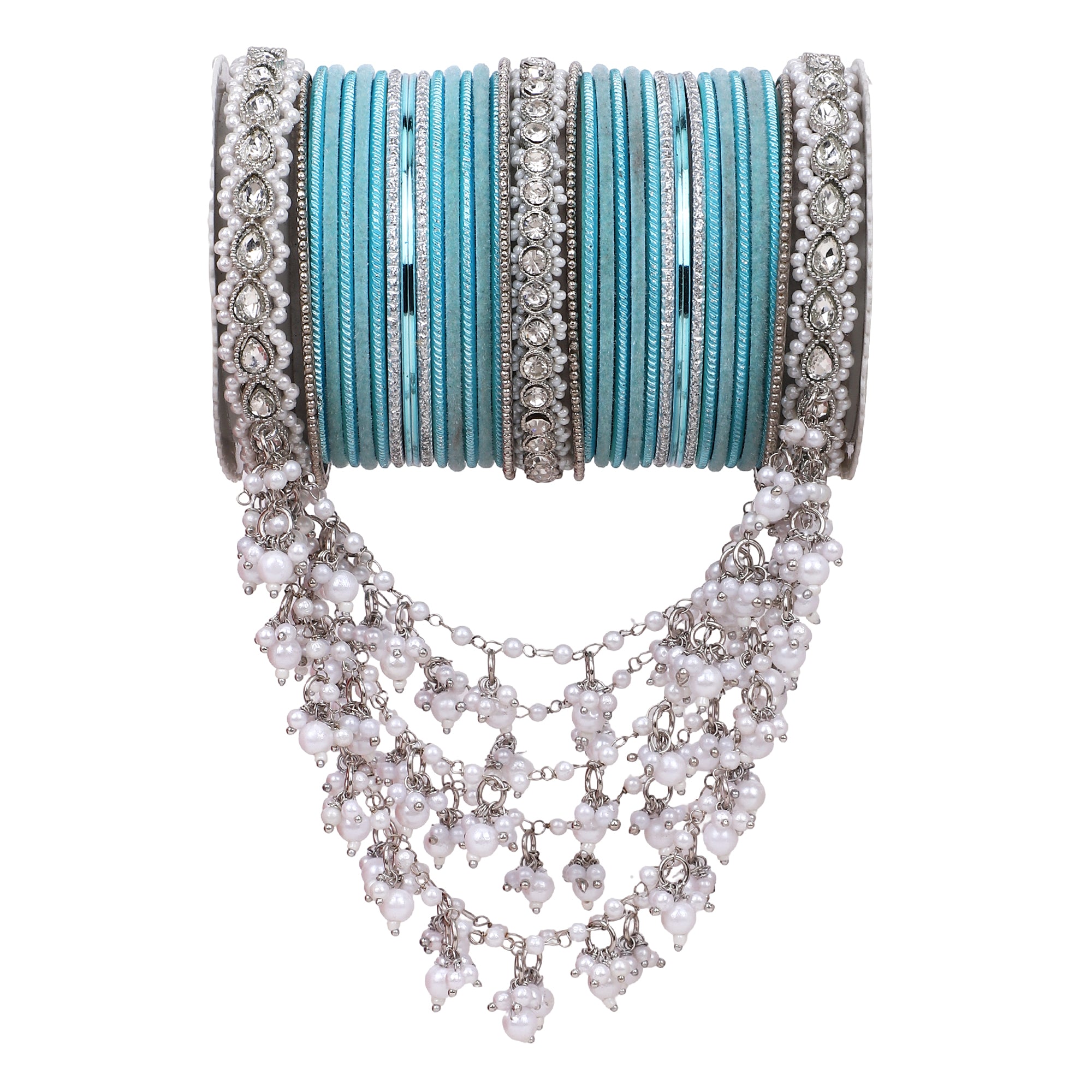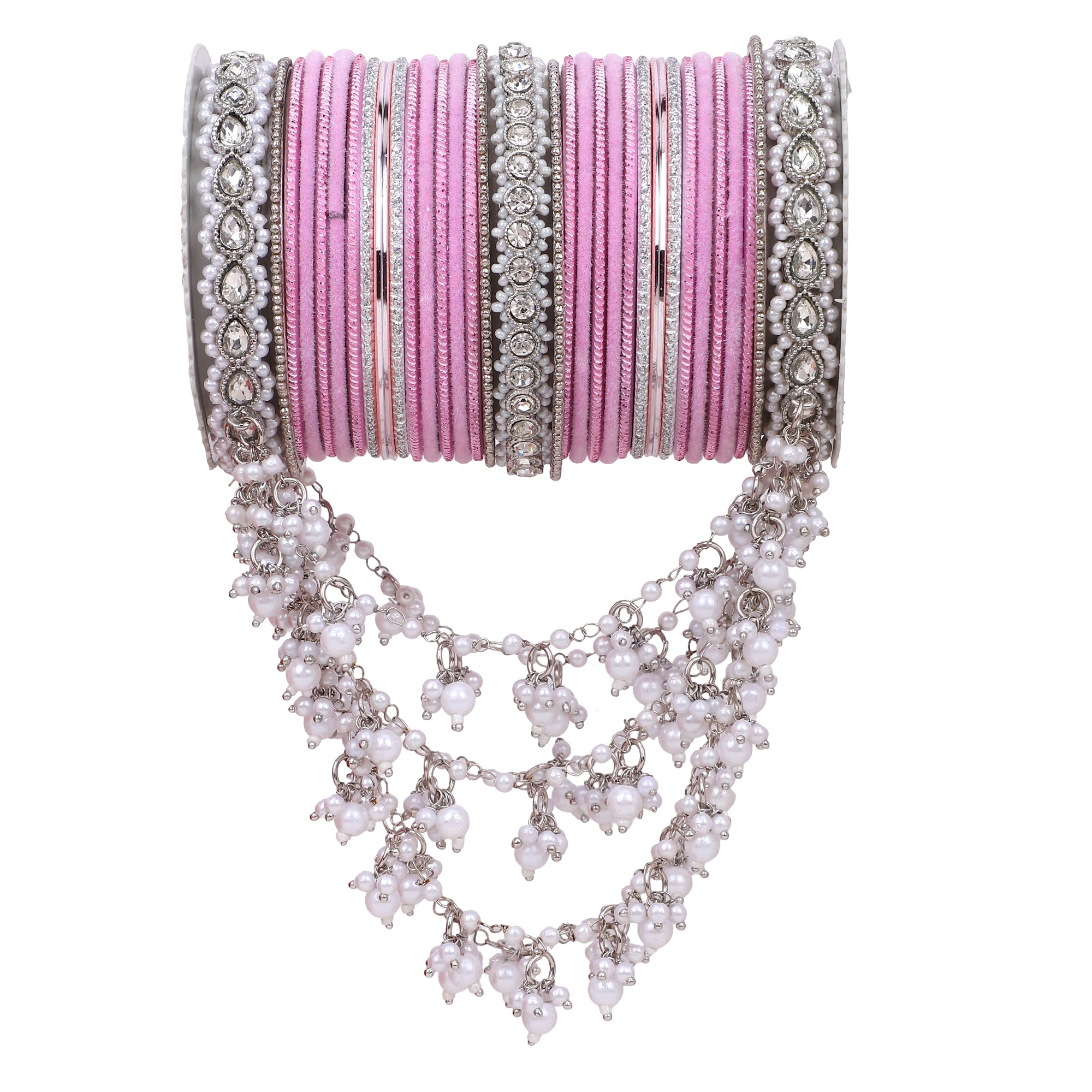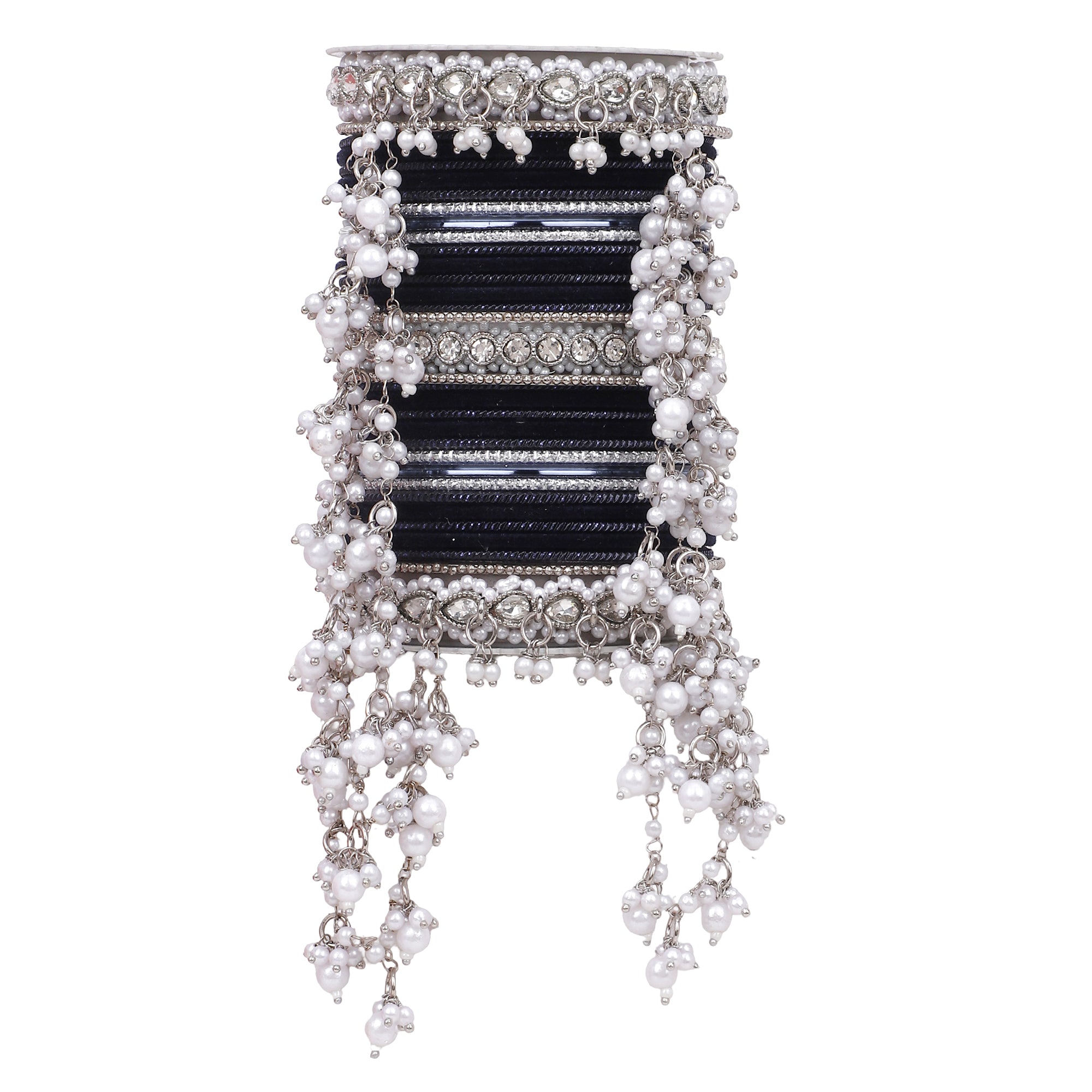Product Description A perfect adornment for a silver embroidered outfit. The bangle set has a beautiful jhoola design to add grace to your outfit. Perfect for all wedding events