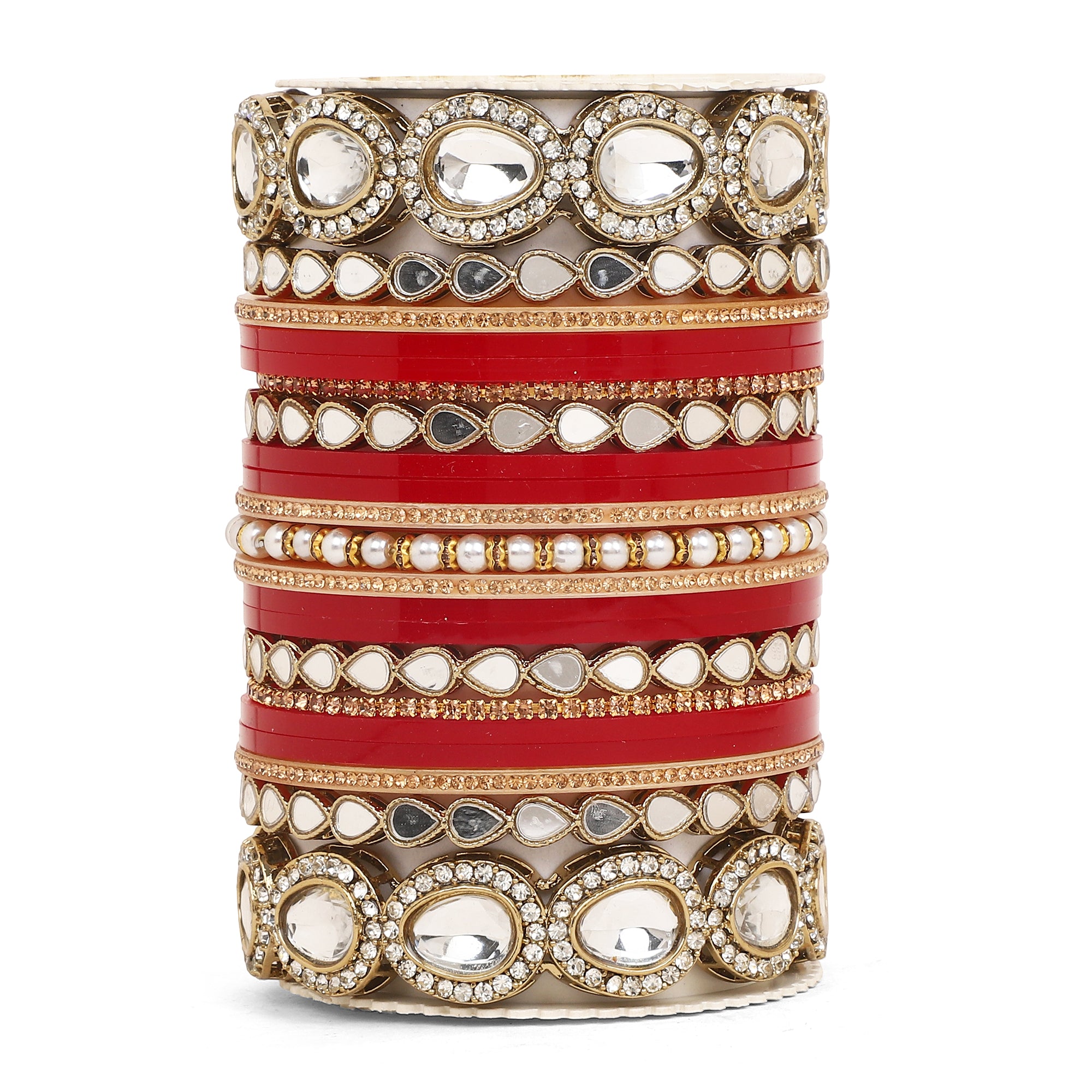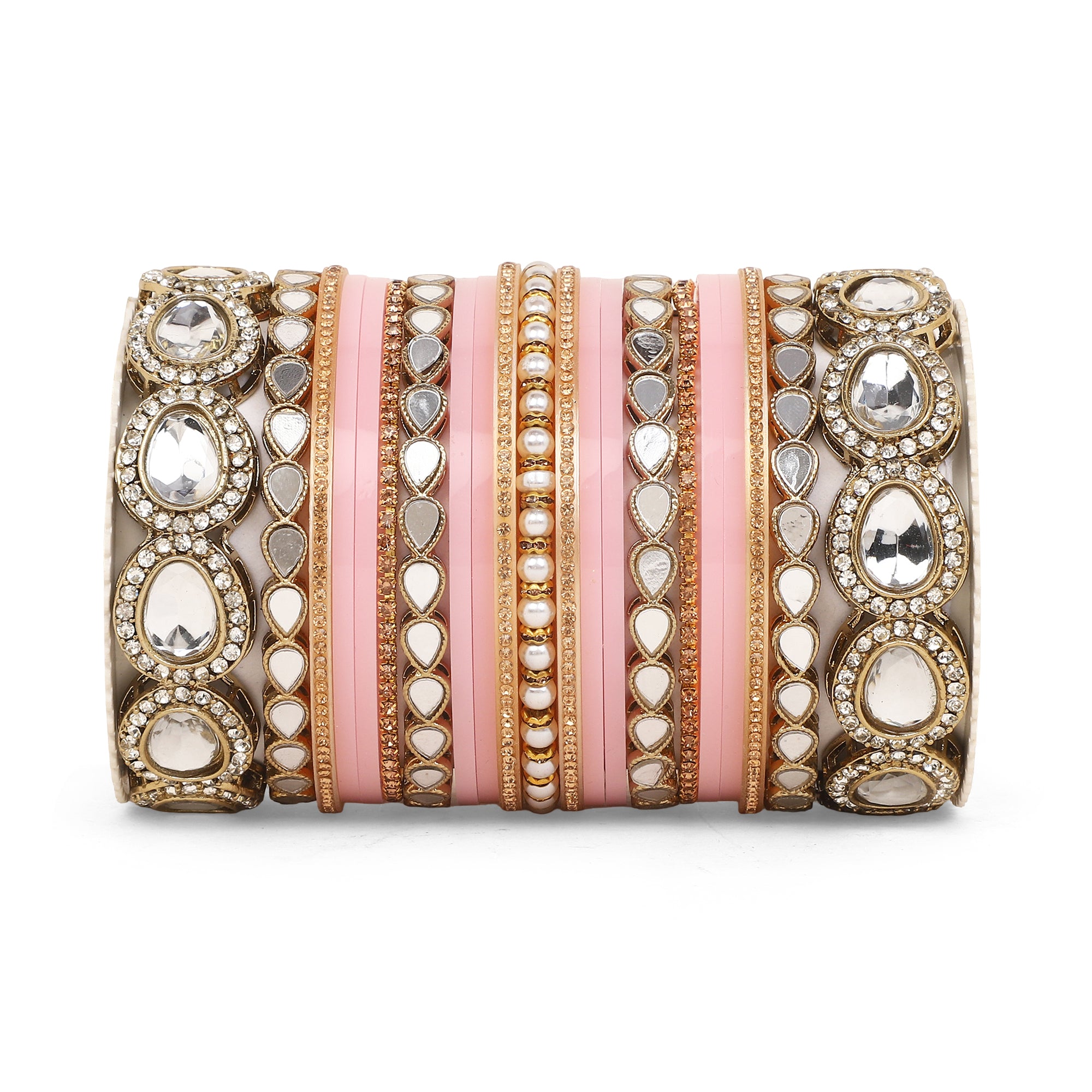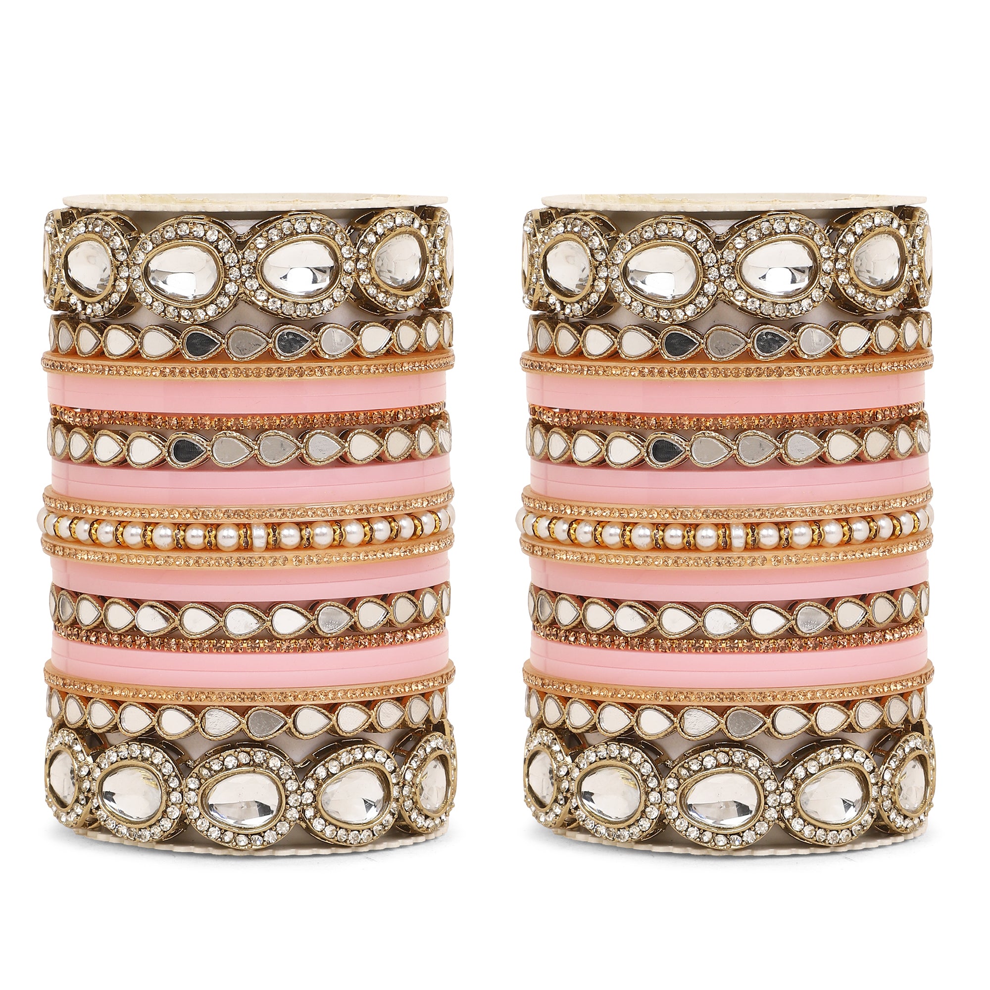 Add grace to your summer wedding and Bright Lehenga with this royal Bridal Chura by Leshya Available in light pastel colours and Sided with traditional Rajwada pacheli kada