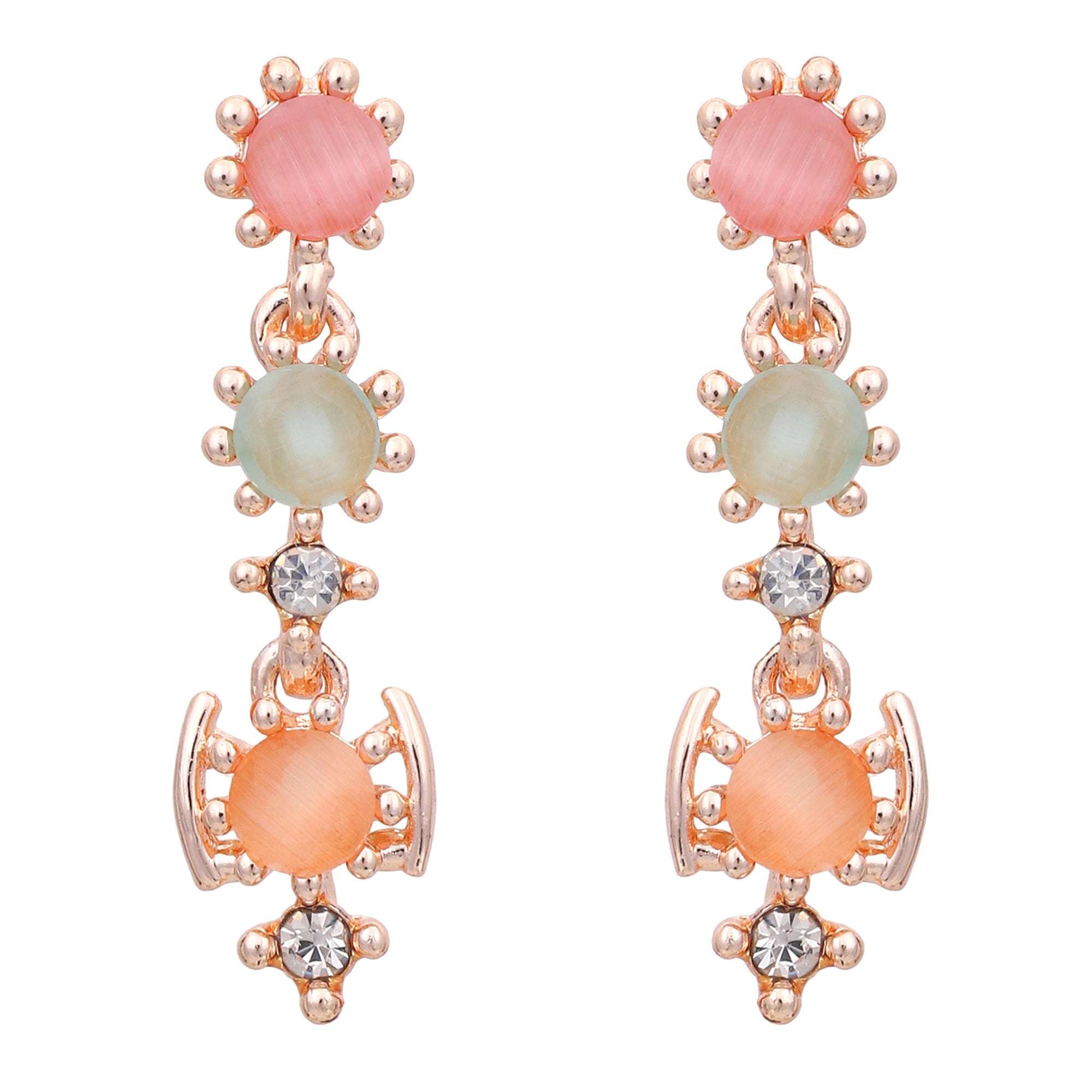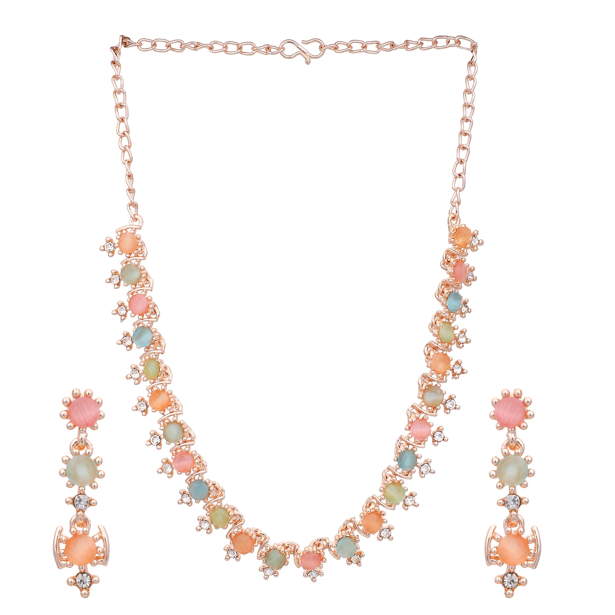 A Silver necklace for the partygoing. Beautiful colored stone studded earrings compliment the necklace . Great to Wear on Cocktail Nights or Sangeet with Gowns